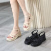 Dép sandal đế xuồng nữ quai dây mảnh xoắn mềm, giày quai hậu bánh mì đế cao 7P