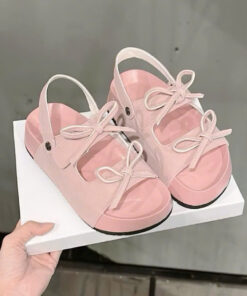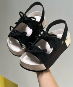 Sandal Nữ A30 2 quai nơ nhí (fom to lùi 1 size )đi được 2 kiểu xé dán tiện lợi cao 3cm da lộn mềm êm mũi tròn
